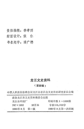 龍江文史資料第四輯_政協龍江縣委員會文史資料研究委員會