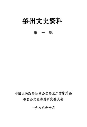 肇州文史資料第一輯_政協黑龍江省肇州縣委員會文史資料研究委員會
