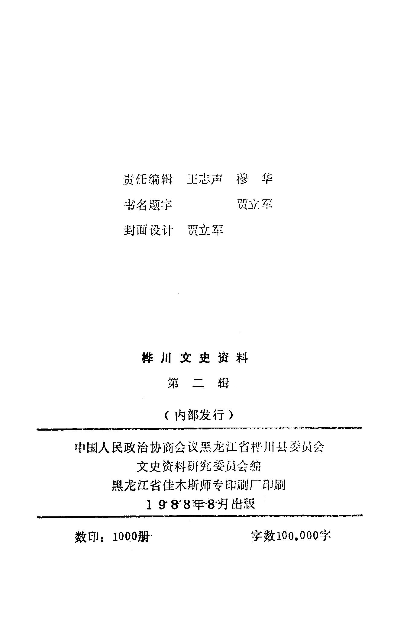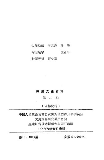 樺川文史資料第二輯_政協黑龍江省樺川縣委員會文史資料研究委員會