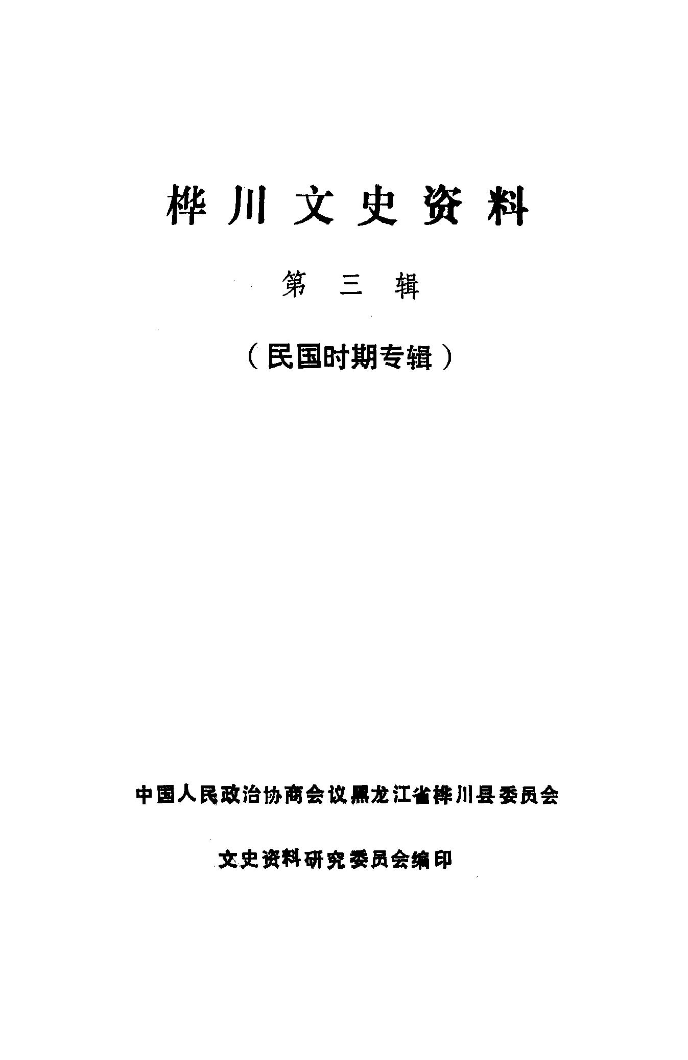 樺川文史資料第三輯_政協黑龍江省樺川縣委員會文史資料研究委員會