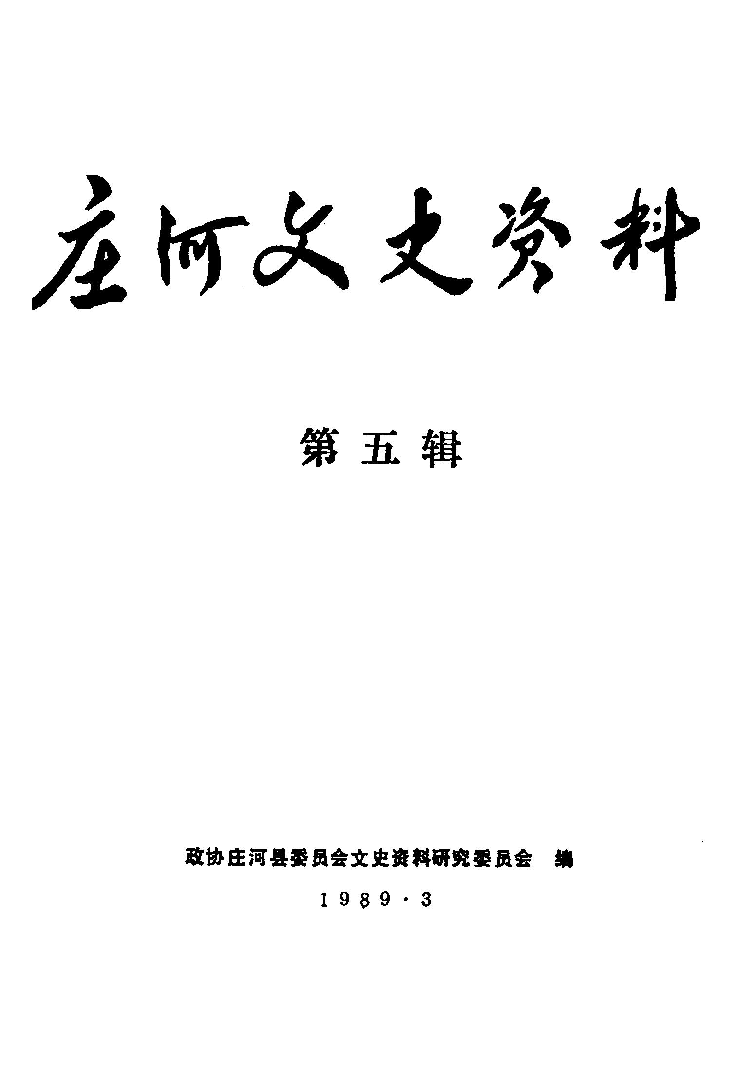 莊河文史資料第五輯_政協莊河縣委員會文史資料研究委員會