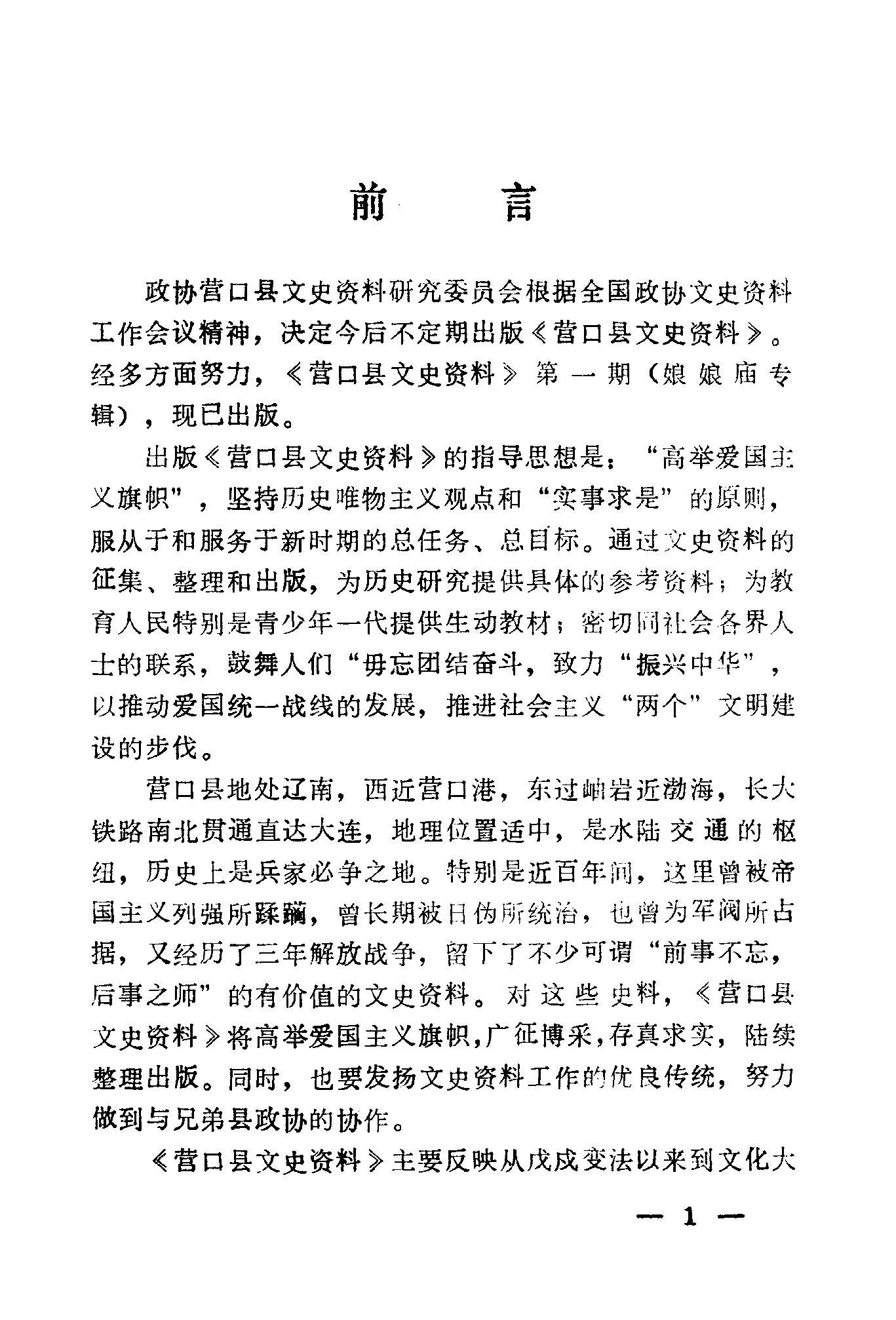 營口縣文史資料第一輯_政協達寧省營口縣委員會文史資料研究委員會