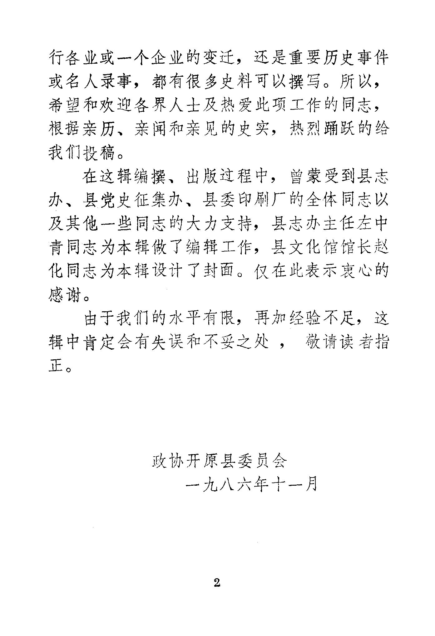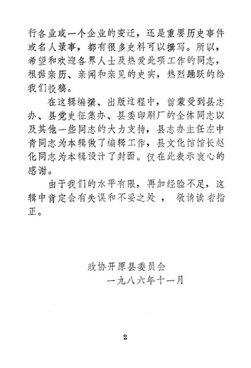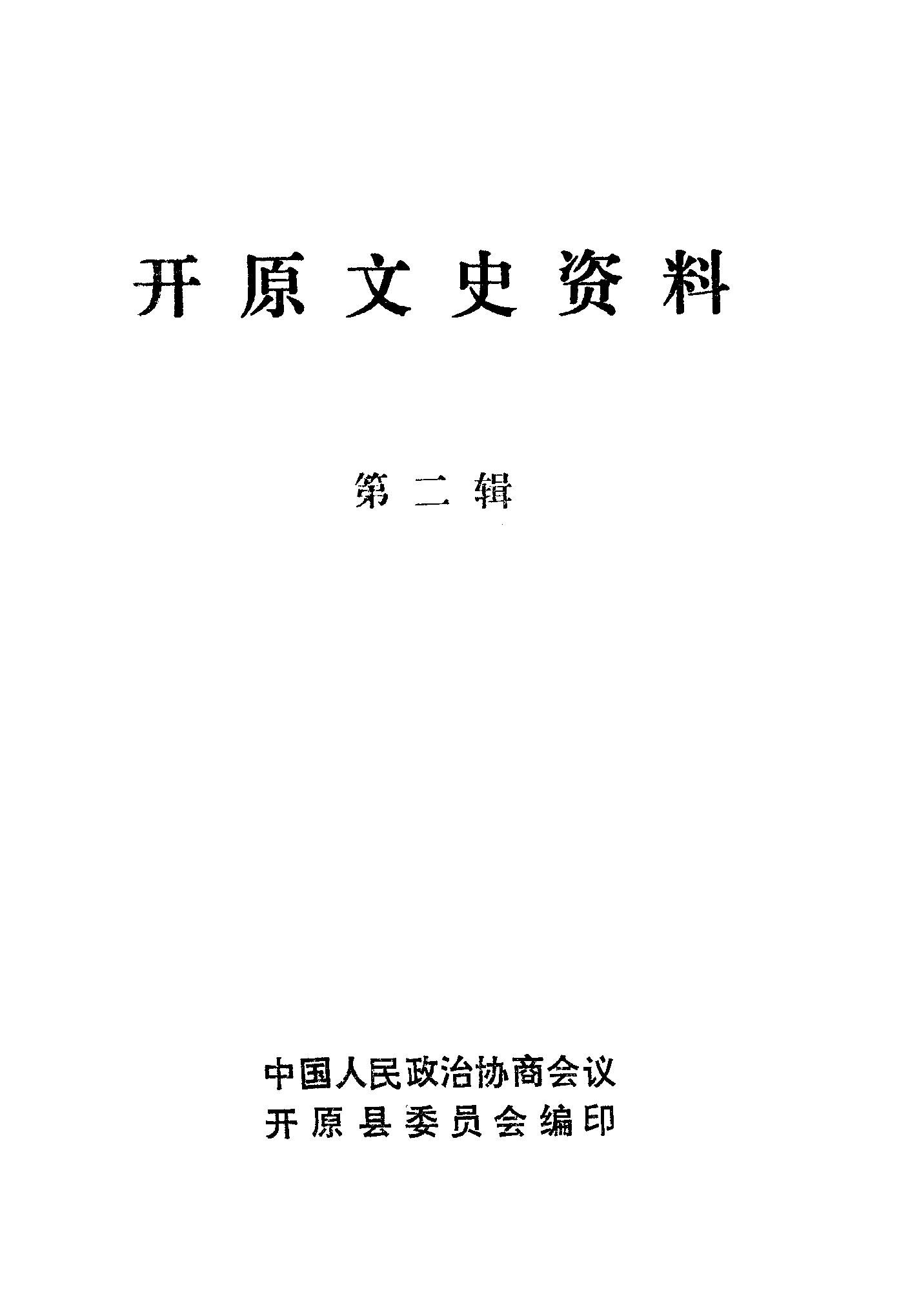開原文史資料第二輯_政協開原縣委員會