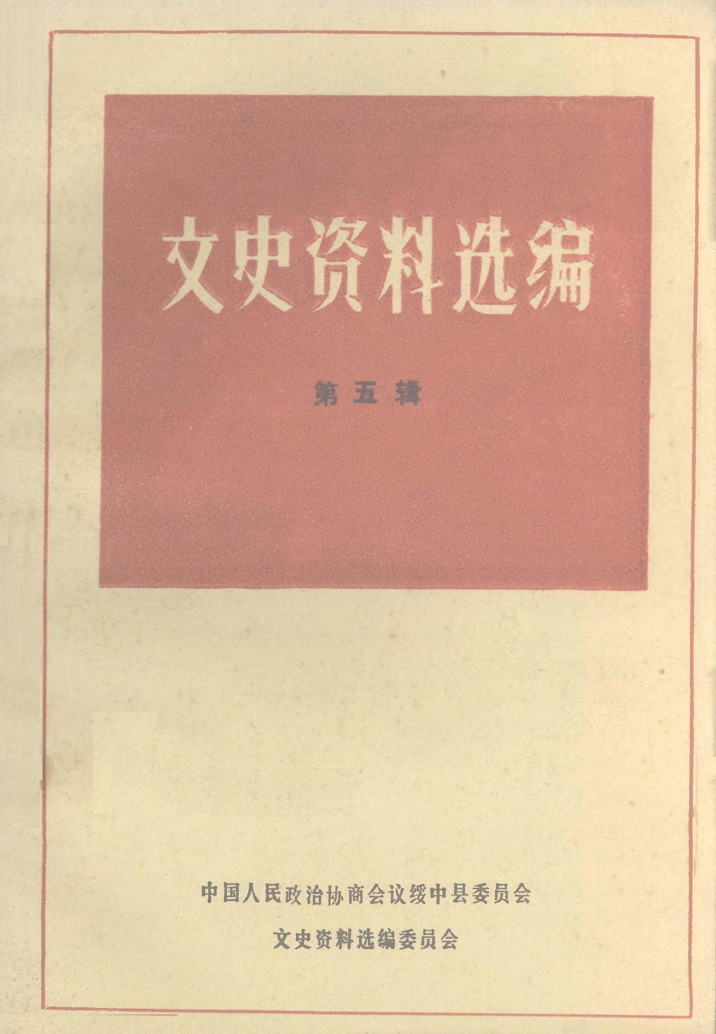 文史資料選編第五輯_政協綏中縣委員會