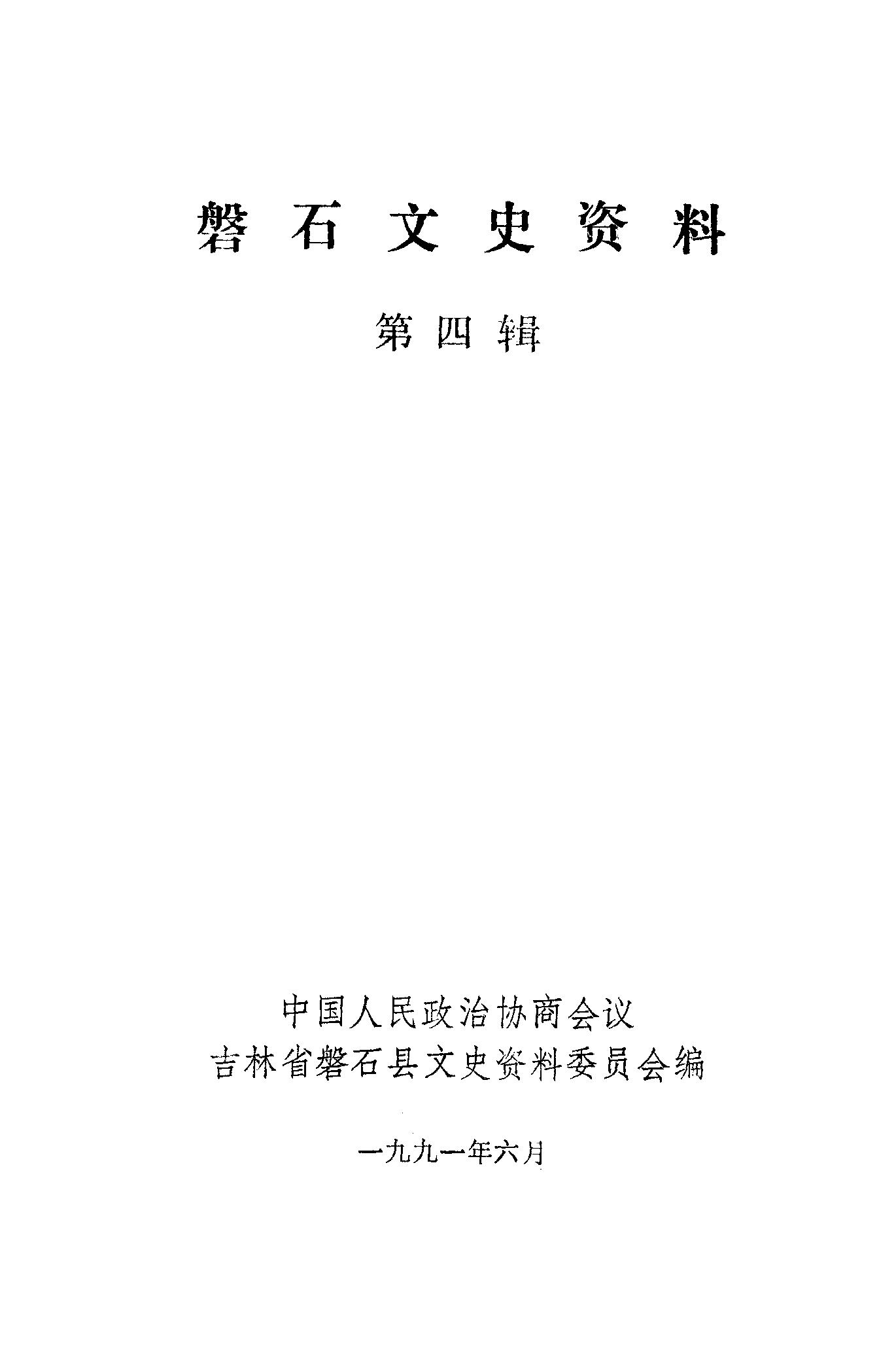 磐石文史資料第四輯_政協吉林省磐石縣文史資料委員會