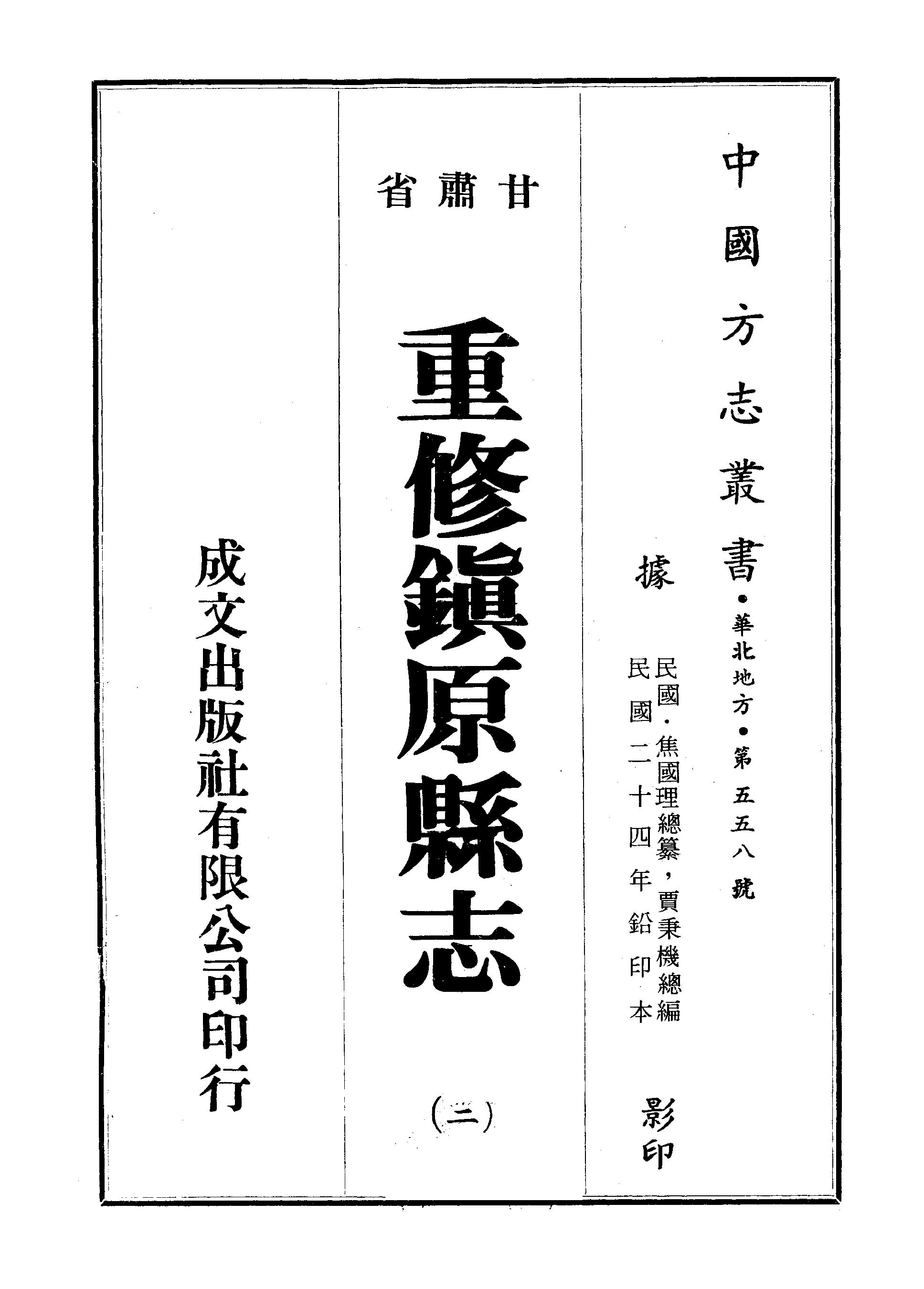 甘肅省重修鎮原縣志二_焦國理成文出版社有限公司印行