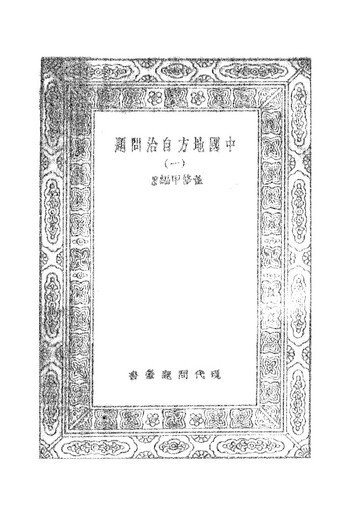 萬有文庫第二集之中國地方自治問題一_董修甲商務