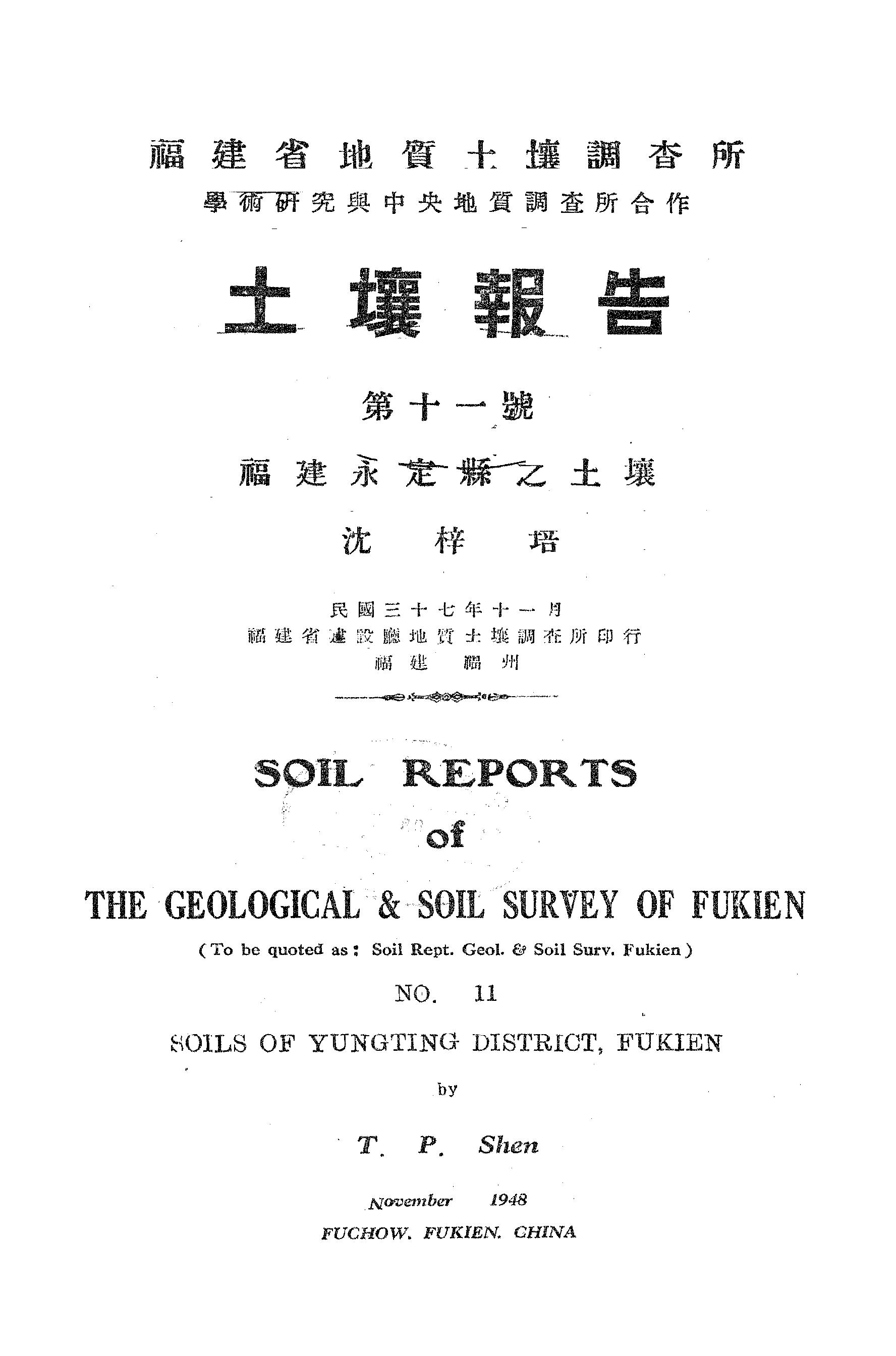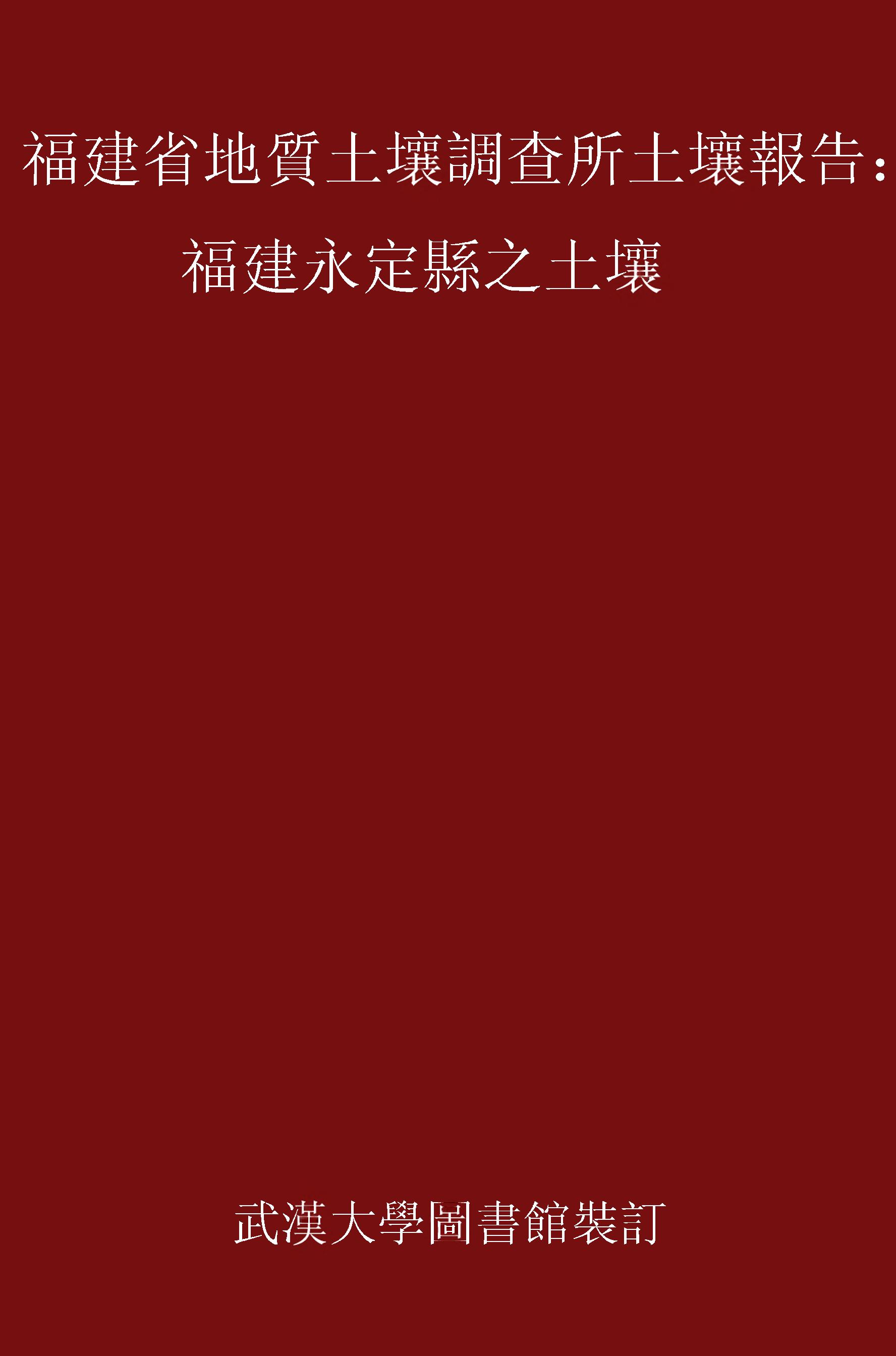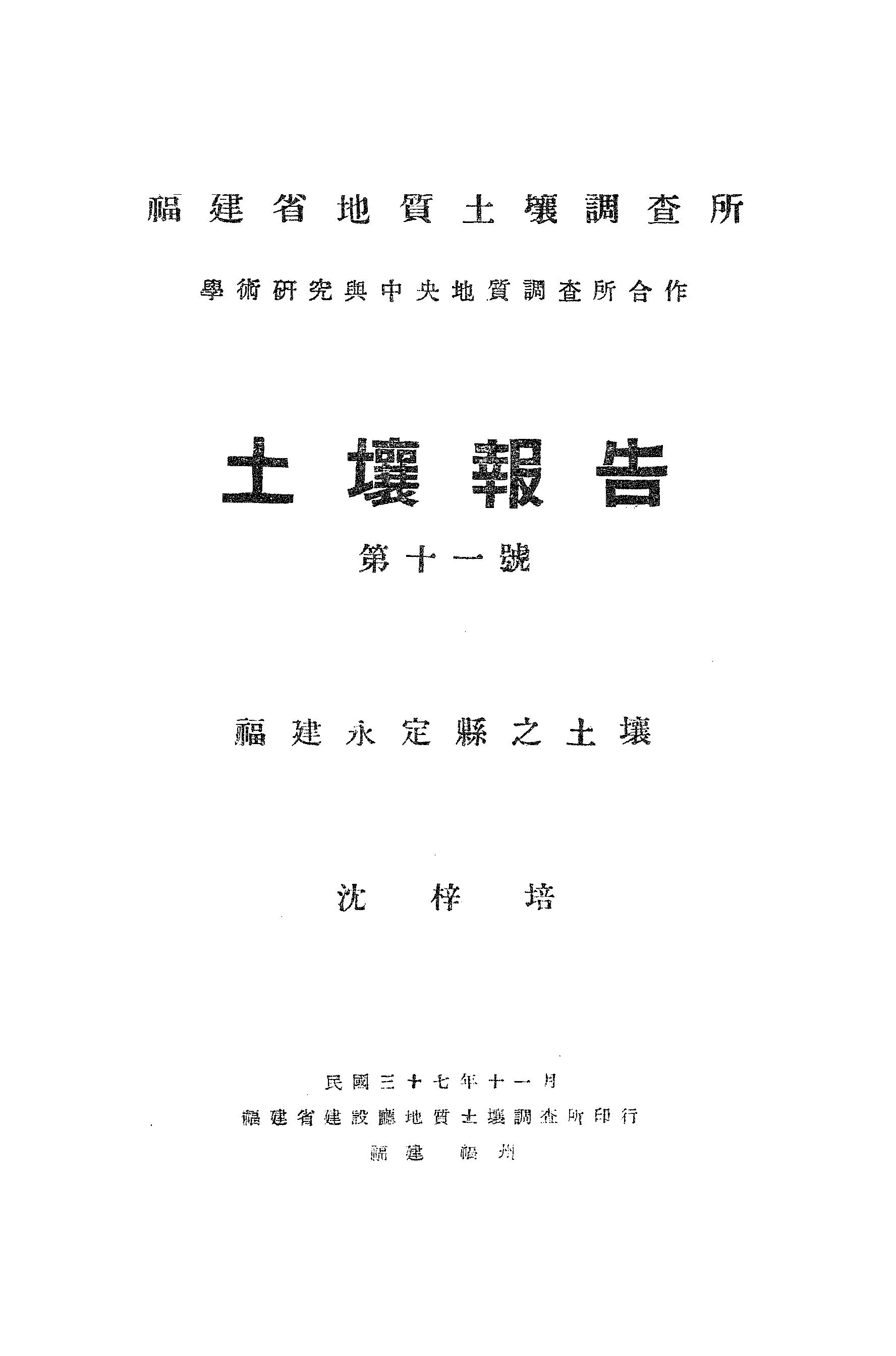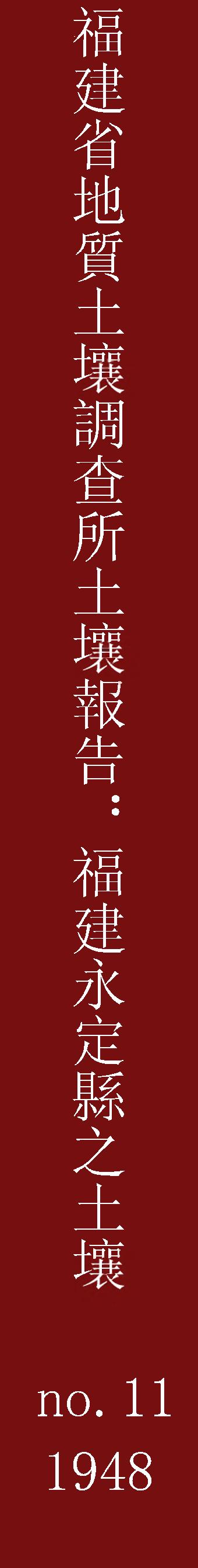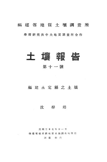 福建省地質土壤調查所土壤報告第十一號福建永定縣之土壤