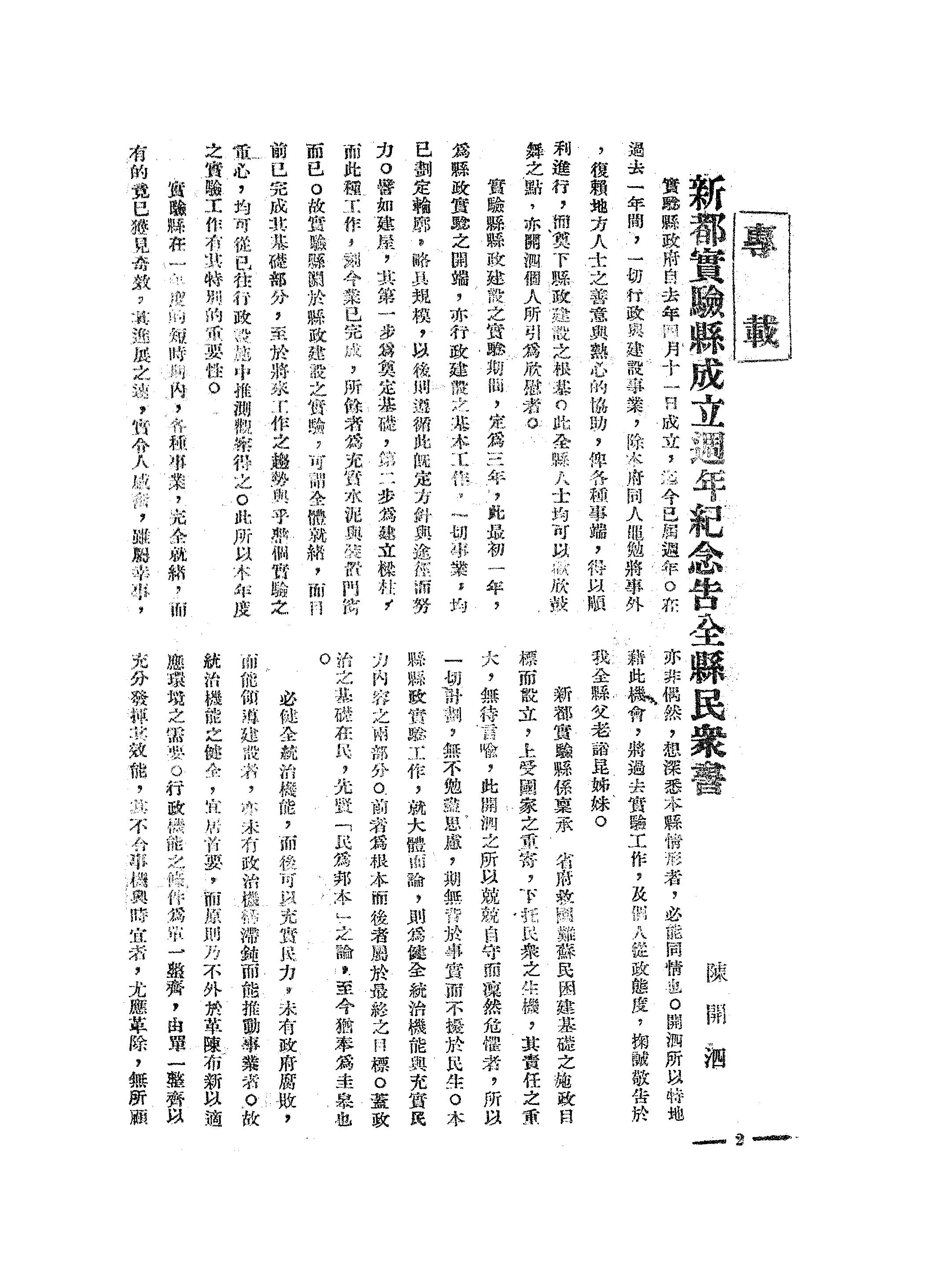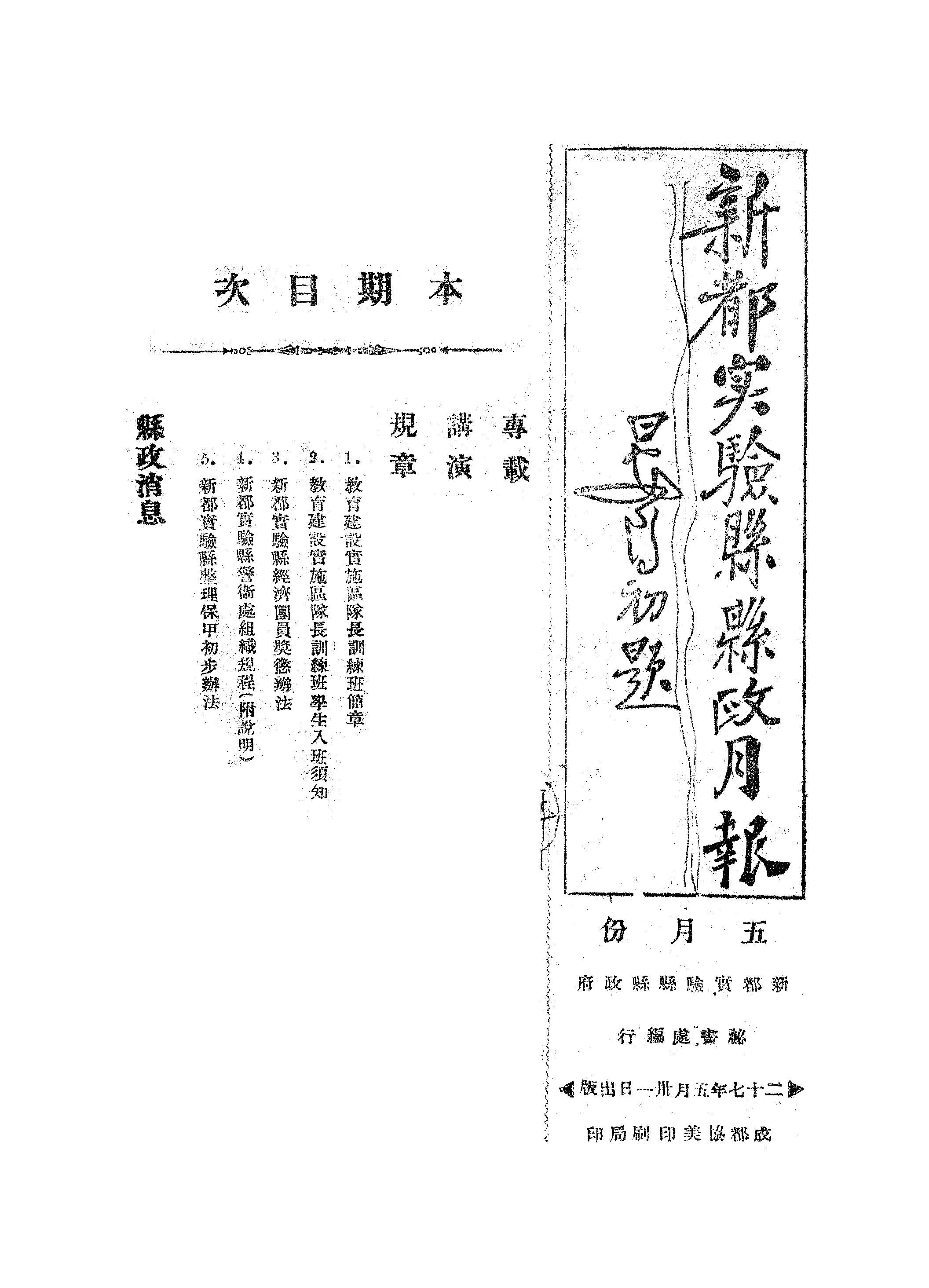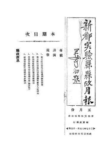 摘自《新都實驗縣縣政月報》