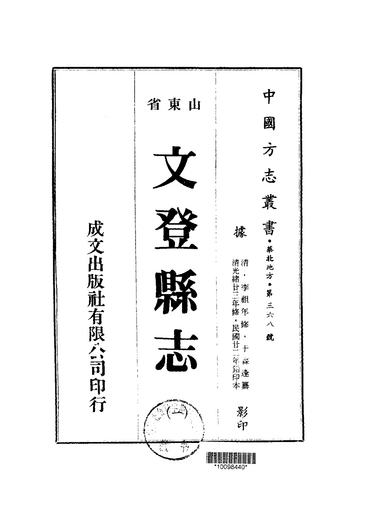 摘自《中国方志丛书·华北地方·第三六八号··山东省·文登县志(一)》