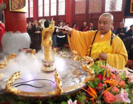 浴佛又称灌佛,在古印度佛教中即为一种重要仪式。每年的农历四月初八,清晨,男女老幼沐浴更衣,到佛门寺院礼佛,就带有浴佛的性质。