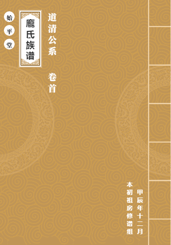 本谱系木贤大宗下派,廉江那良廷光公支系之支分于广西博白县龙潭镇、大坝镇庞氏道清公后裔谱,本谱自2024年6月起编修,本初祖房谱于2025年1月付印成谱并纸质交付;如有意了解谱书详细内容或斧正内容者,请联系本初房族叔(宝炼、美寿等),本支系其他房谱尚在继续完善中,电子版由始创者(庞靖,微信:VX12978580.)管理并解释,暂不对外开放阅读权限,待道清公支系(道清公支系谱)资料完善后适时对外开放。敬请读者谅解。